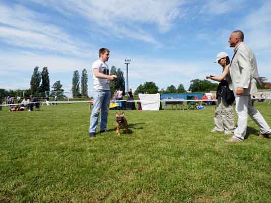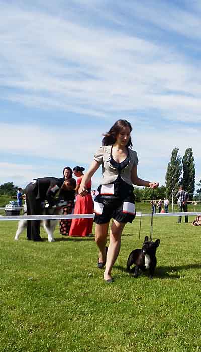 Началась выставка. Французы выступали первыми в своем ринге. Так что нам не пришлось долго ждать. Вначале всегда идут щенки .Янын Моня хоть и малыш еще совсем, но очень хорошо выступил со своим хендлером и получил замечательный титул “Лучший щенок” (Best Puppy).
